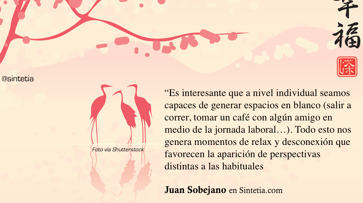 No es un momento sólo personal, sino que también puede ser grupal, puesto que una empresa que permite la relación constante de sus trabajadores, independientemente del departamento y categoría de los mismos, está creando espacios en blanco que potencian mucho esos impulsos a través de ideas nuevas y no esperadas.