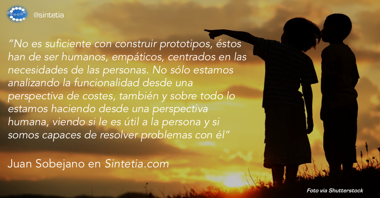 No es suficiente con construir prototipos, éstos han de ser humanos, empáticos, centrados en las necesidades de las personas. No sólo estamos analizando la funcionalidad desde una perspectiva de costes, también y sobre todo lo estamos haciendo desde una perspectiva humana, viendo si le es útil a la persona y si somos capaces de resolver problemas con él. Hablamos de prototipos con sentido, no solamente técnicos, también desarrollando el prototipado humano.